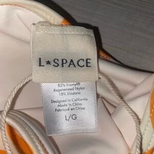 NWT L*Space Levy Classic Bikini Bottom Orange and White Patterned Womens Size L