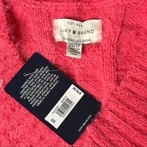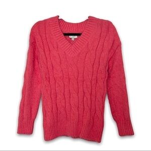 NWT LUCKY BRAND Coral Chunky Cable Knit V-Neck Pullover Fuzzy Eyelash Sweater XS