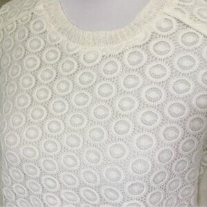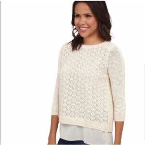 Beautiful crochet vanilla cream lace front, chiffon layer sweater by Lucky Brand.