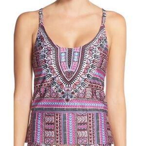 NWT LUCKY BRAND Desert Dancer Print Strappy Back Tankini Swim Top Size Large.