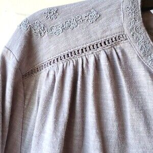 NWT LUCKY BRAND GRAY COTTON EMBROIDERED PEASANT SHIRT LARGE