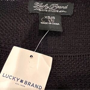 NWT LUCKY BRAND Knitted Black Fringe Poncho with Tassels women size S