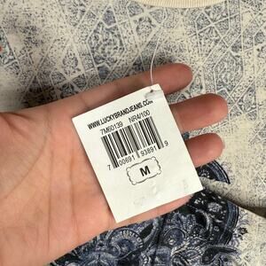 NWT LUCKY BRAND Mens Size M Skull Y2K Style Biker Rocker Elder Emo Graphic Tee. This tshirt is versatile versatile enough to wear on a first. date or to a concert. It has a unique all over pattern, a front pocket and is 100% cotton so it's super soft. This shirt would look great layered with a thermal underneath.