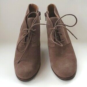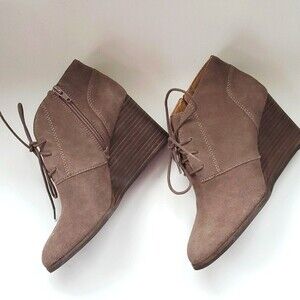 NWT LUCKY BRAND SHYLOW SUEDE TAUPE LACE UP WEDGE BOOTIES SIZE 7.5