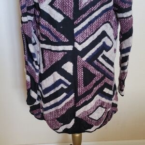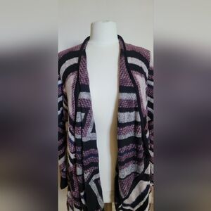 New with Tag - Lucky Brand open front sweater (sz - S/P). The colors of the sweater are ivory, black & burgandy. The ivory color is a raised fabric. The length of the sweater is 42". Please see all pictures.