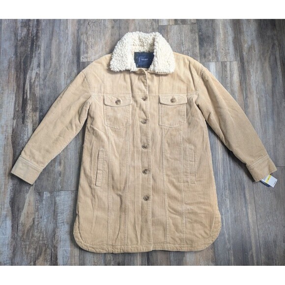 NWT LUCKY BRAND Women’s Tan Corduroy Sherpa Satin Lined Button Down Coat Medium