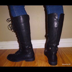 NWT LUCKY black knee high leather riding lace up combat style boots | size 6