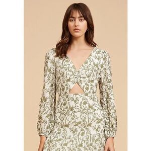 NWT LUCY PARIS Gala Green floral cutout boho pleasant ruffles dress women’s S