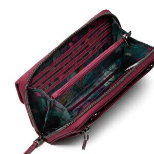 NWT- LUG- SATIN LUXE KICKFLIP SE CROSSBODY WALLET ( Hearts interior)- Raspberry