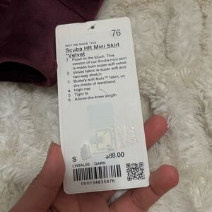 NWT LULULEMON ATHLETICA Women’s Scuba HR Velvet Mini Skirt