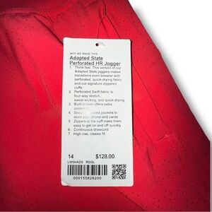 NWT LULULEMON Adapted State Perforated HR Jogger - Red Glow Size 14