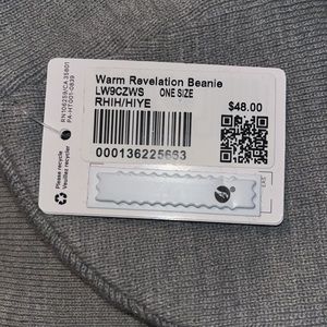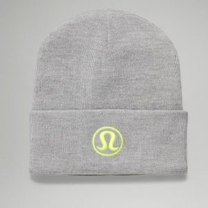NWT LULULEMON WARM REVELATION BEANIE CAP/hat Gray Yellow emblem