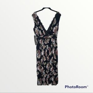 NWT LULU'S Black Floral V Neck We Made it Black Pleated Midi Dress Size Small