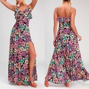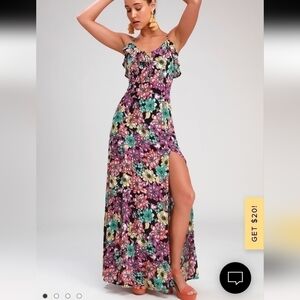 NWT LULU'S DYNAH BLACK FLORAL PRINT SLEEVELESS MAXI DRESS SIZE SMALL