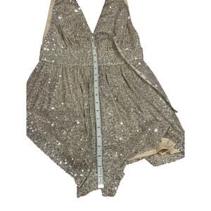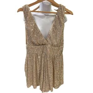 NWT LULUS Gold Embellished Sequin Sleeveless Plunge V-Neck Romper Women's Medium