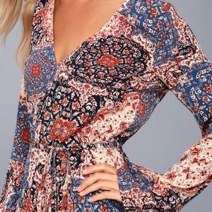 NWT LULUS Mosaic Marvel Rust Orange Print Long Sleeve Maxi Dress