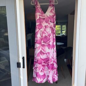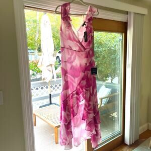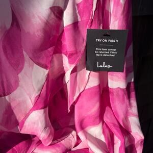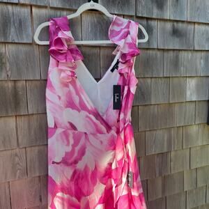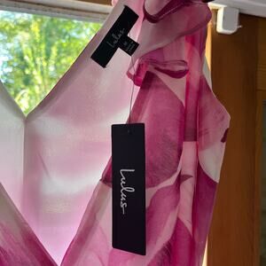 NWT LULUS Pink & White Floral Ruffle Midi Wrap Dress, Size M