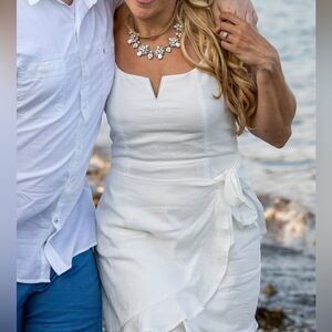 NWT LULUS Sunny Oasis White Ruffled Faux-Wrap Mini Dress. Size Small