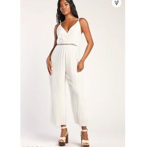NWT LULU’S Sunny and Chic Ivory Swiss Dot Backless Jumpsuit women size XL