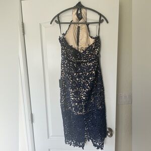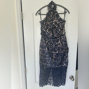 NWT LULUS Women’s Divine Destiny Navy Blue Lace Midi Dress