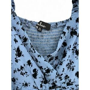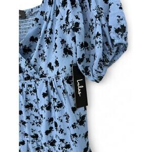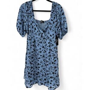 NWT LULU'S | XL | Can't Hurry Love Slate Blue Floral Puff Sleeve Mini Dress