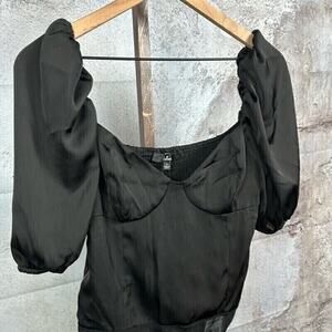 NWT LULUS satin whimsigoth bodysuit top size L dark coquette lingerie bustier