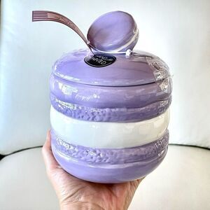 NWT LUNA & SAGE Gorgeous Macaron Lilac/White Glossy Ceramic 7”Canister Jar w Lid