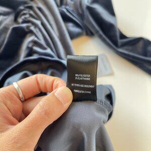Description: Brand new with tags ruched grayish, blue velvet, bodycon stretchy long sleeve, mini dress with asymmetrical collar by Lush in US women’s size XL. Seems to run slightly small, please refer to measurements below. Currently sold out at Nordstrom.