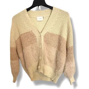 NWT LUSH Striped Fuzzy Knit Cardigan Blush Tones Button-Up Sweater Womens Size S