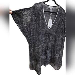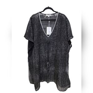 NWT L/XL Metallic Sheer Midi Swimsuit Coverup with Wait Drawstring