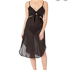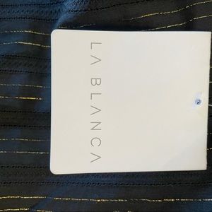 NWT La Blanca Black with Gold thread stripe cutout dress / coverup