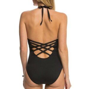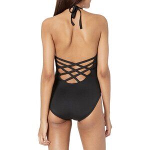NWT La Blanca Island Goddess Caged Keyhole Halter One-Piece Swimsuit Sz. 4