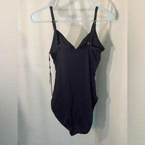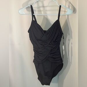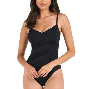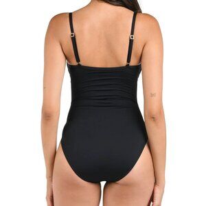 NWT La Blanca Island Goddess Draped Front Lingerie One Piece in Black Size 8