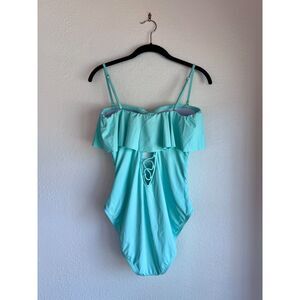 NWT La Blanca Island Goddess Ruffled Bandeau One Piece Swimsuit in Seafoam Sz 8