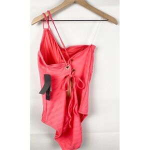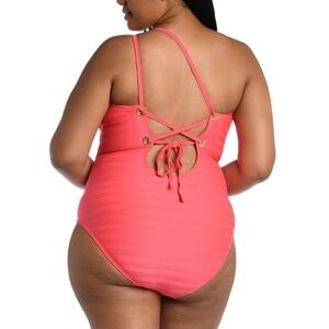 NWT La Blanca Linea Costa One Shoulder One-piece Swimsuit, Coral Sun - Size 16