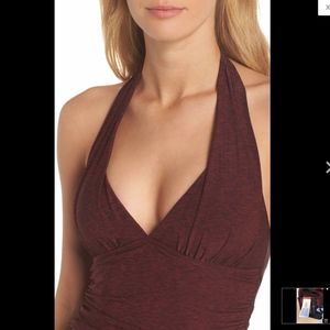 Flattering and comfortable with intricate ruching and an adjustable halter neckline.