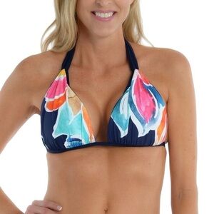 NWT La Blanca Petals in Bloom Reversible Halter Bikini Top - Indigo Size 12