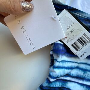 NWT La Blanca Serene stripe tummy control,with underwire and cross back in blue