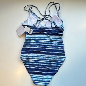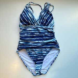 NWT La Blanca Serene stripe tummy control,with underwire and cross back in blue hues.