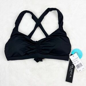 NWT La Blanca Shirred Bralette Tie Back Bikini Top in Black