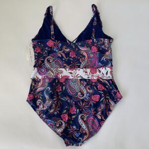 NWT La Blanca Swimsuit Women 20W Paisley Floral One Piece Gypsy Boho Colorful