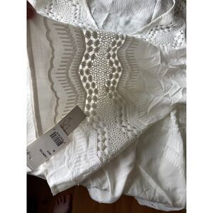 New with tags! La Blanca White Embroidered Eyelet V Neck Swim Cover Up Dress Bell Sleeves. Women's Size medium