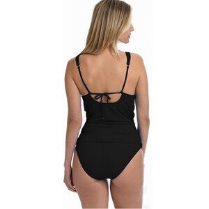 NWT La Blanca Womens Twist Front Tankini Swimsuit Top Black Size 14 $100 LLL145