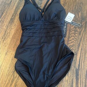 NWT La Blanca Island Goddess Multi-Strap Cross-Back One Piece size 10