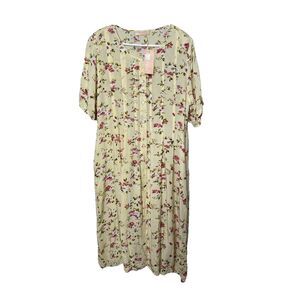 NWT La Cera Dress Short Sleeve Plus Size 1X Butter Yellow Midi Floral Pockets