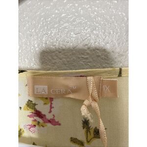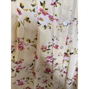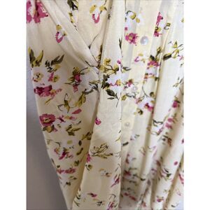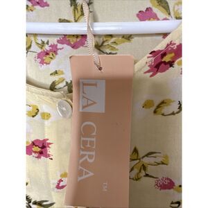 NWT La Cera Dress Short Sleeve Plus Size 1X Butter Yellow Midi Floral PocketsTie in the back, Button front, Shoulder pads, and pockets. 46.5" long down the middle back. The rest of the measurements are in the pictures.