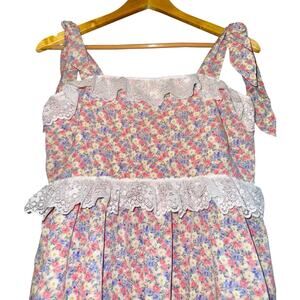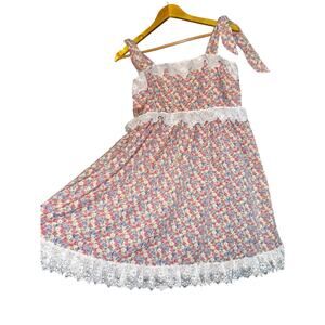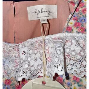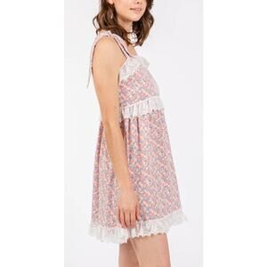NWT La February Ditzy Floral Baby Doll Dress Small Lace Trim Pink Cottagecore