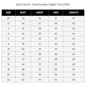 Sizing tips: Every designer cuts their dresses differently & according to their size chart. Please measure yourself (in inches) before ordering & follow our size chart (pictured under the main dress picture). If you are in between sizes or unsure of the fit, choose a size up, as it is easier for your seamstress to take in rather than out. Please refer to the size chart in our images section.