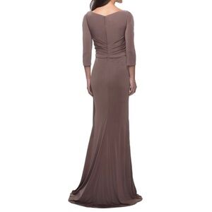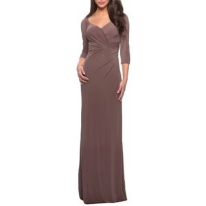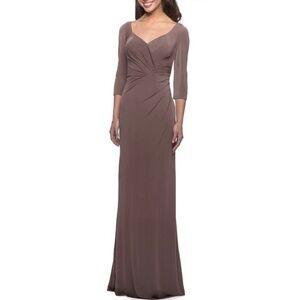 NWT La Femme 26955 Floor Length Jersey Gown in Cocoa Sz. 14