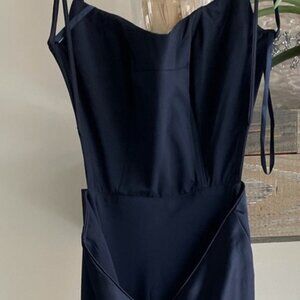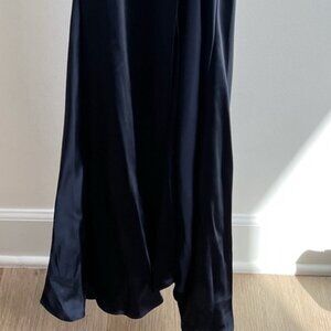 Product Details: Strappy Open Back, Dual Spaghetti Straps, Seamed Bodice, Sleeveless, Full Length, Side Slit, Back Zipper Closure